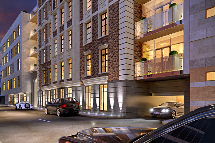 Двадцатисемиквартирный клубный дом украшает собой Гранатный переулок, а рядом с ним находится четырнадцатиквартирное здание такого же формата.