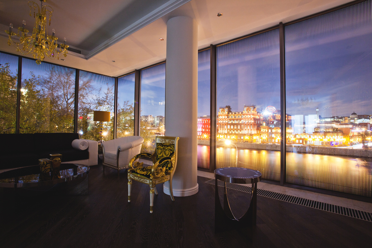 Пентхаус, расположенный на улице Знаменка, дом 9. Его особенность – огромное арочное окно с прямым видом на Кремль.