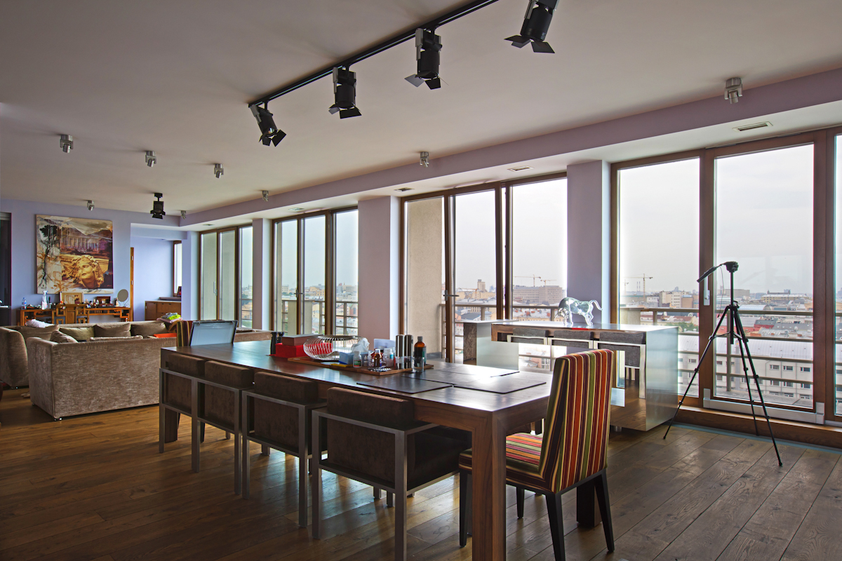 Очень красивый, светлый, куполообразный Пентхаус со вторым светом, с большим количеством окон, расположенный в центре города на улице Большая Никитская, в доме 45. Высота потолков около 8м, поэтому создается ощущение, что находишься в «замке».