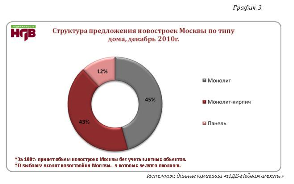 Последним значимым фактором является тип дома. Анализ рынка показывает, что более дешевые квартиры находятся в панельных домах. Однако последних в столице меньшинство. На рынке столицы преобладают монолитно-кирпичные дома бизнес-класса. На них приходится около 75% от общего объема предложения. Об этом сообщает Мария Литинецкая, генеральный директор компании «МИЭЛЬ-Новостройки». В свою очередь НДВ-Недвижимость приводит собственную классификацию новостроек по типу строительства.