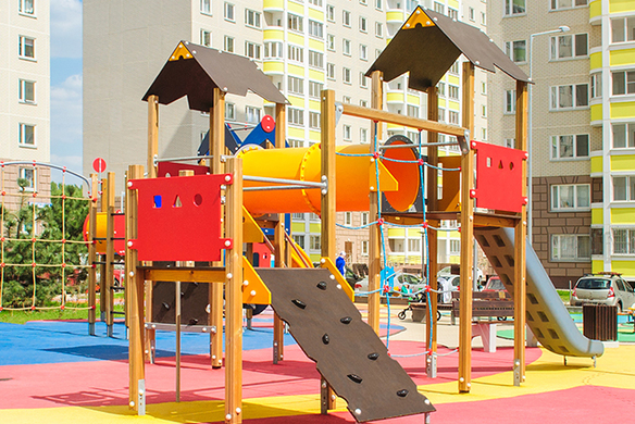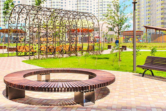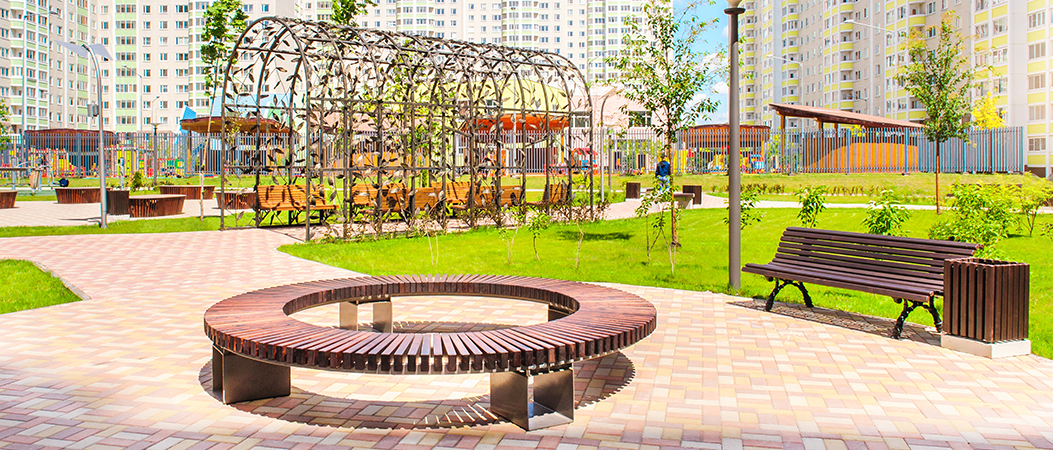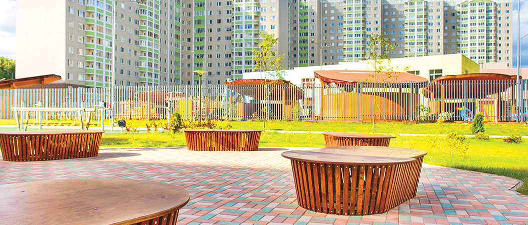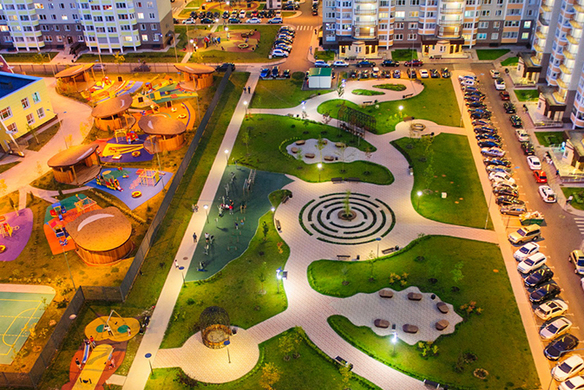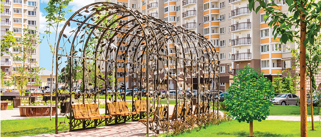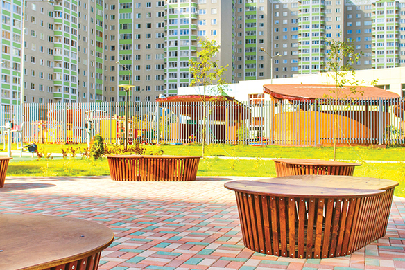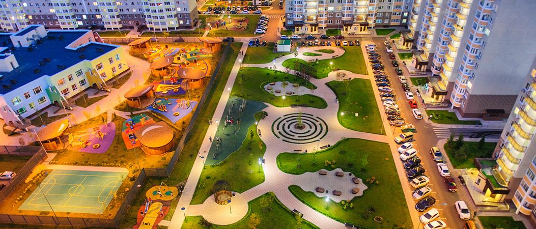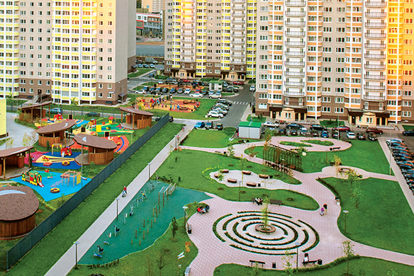 Во дворах оборудуются спортивные и детские площадки, оформляется обширная парковая зона.