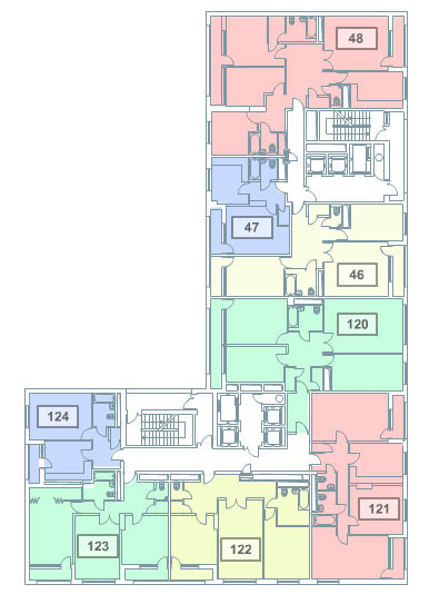 Жилой фонд дома представлен 157 квартирами площадью 41-173 кв.м. (в том числе и видовыми апартаментами, расположенными на последних этажах здания). Высота потолков достигает 3 м. В квартирах предусмотрена установка двухкамерных стеклопакетов, конвекторов Korado и стальных радиаторов.