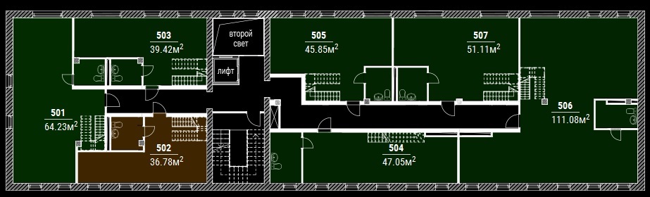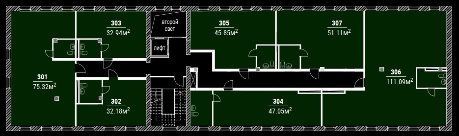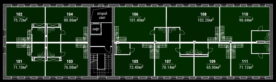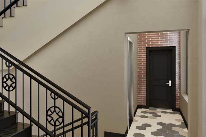 - Первый и второй этажи отведены под двухуровневые квартиры-таунхаусы с отдельным входом и небольшим собственным палисадником;