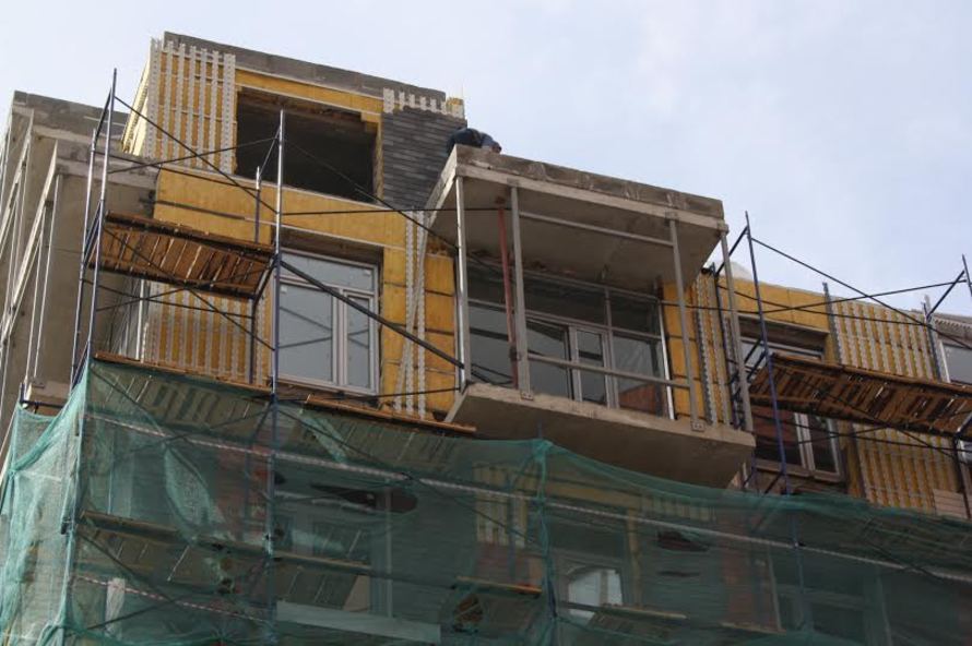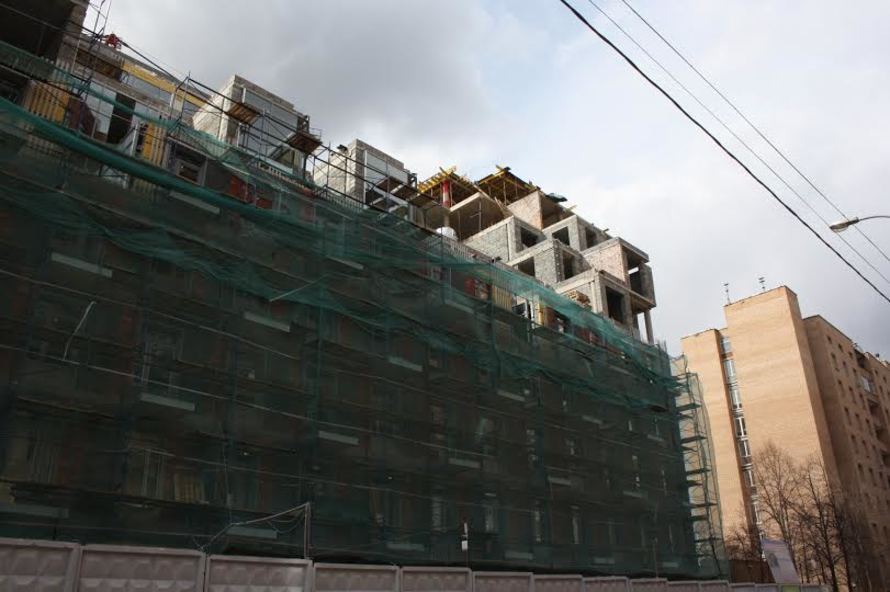 В настоящий момент продолжается активная стройка, но проход на объект разрешен, показы проводятся на 4-м этаже. 90% монолитных работ уже завершено. Сейчас проводятся коммуникации, смонтирован гидроузел, через 1,5 месяца будет осуществлен монтаж электричества. В общем, стройка ведется бойко.