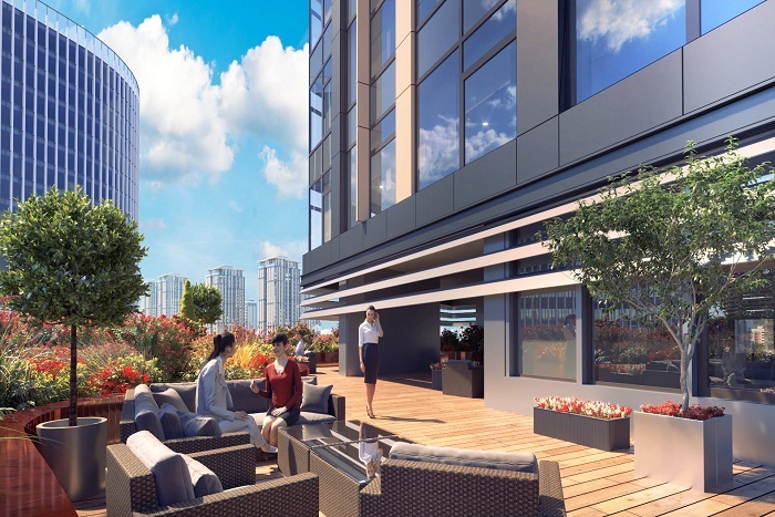 Архитектурную концепцию комплекса разрабатывали два известных бюро — российское и японское. 26-этажное здание будет привлекать внимание необычными решениями фасадов со стильной ассиметрией окон, декоративными элементами и большой площадью остекления.
