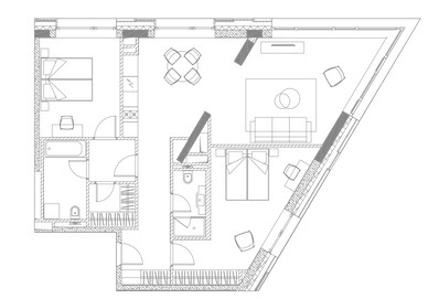 Жилые апартаменты начинаются с четвертого этажа. Нижние три полностью отведены под объекты внутренней инфраструктуры. В проекте запланировна большая торговая галерея с кафе и ресторанами — она займет два этажа, фитнес-центр, коворкинг, офисы сервисных служб. В подземном уровне разместится паркинг.