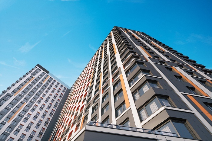 Новый комплекс — 25-этажное монолитное здание, выдержанное в современном стиле и привлекающее внимание яркими фасадами с необычными элементами декора.