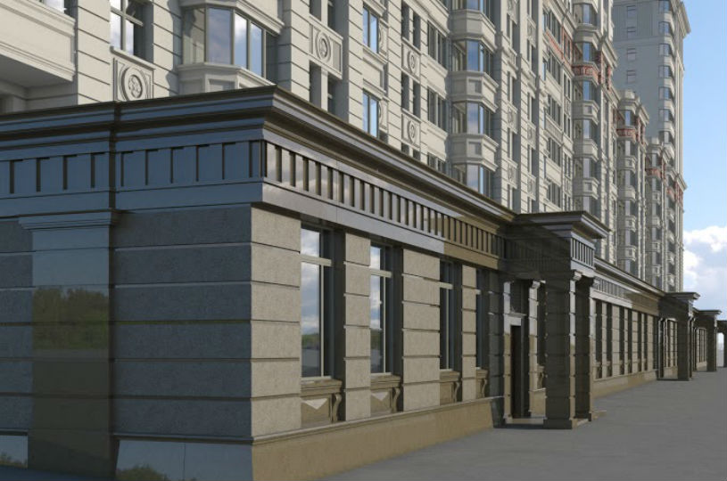 Отделка входной группы будет произведена в неполированном, термически обработанном качественном граните. „Импортозамещать“ качество мы не можем себе позволить, — шутит