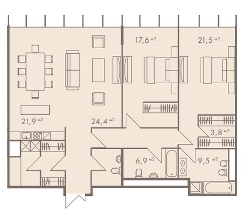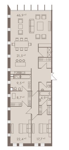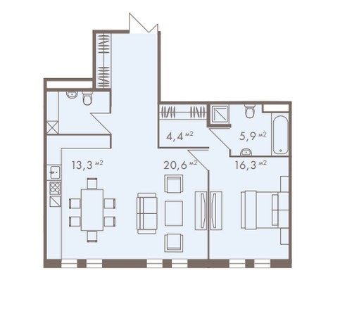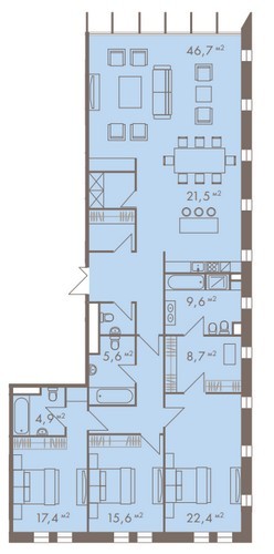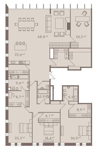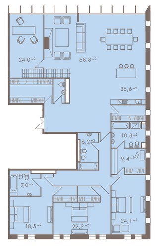 В доме разместилось всего 10 апартаментов площадью от 79 до 292 кв. метров. Уникальное предложение ЖК «Чехов» — пентхаус верхнего этажа с собственной террасой на эксплуатируемой крыше.