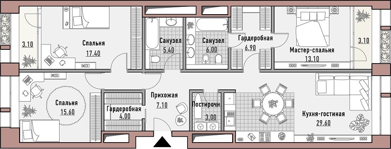Квартиры предлагаются от одно- до четырехкомнатных, а выбор площадей и продуманных, функциональных планировок с множеством дополнительных помещений, способен удовлетворить практически любые запросы.