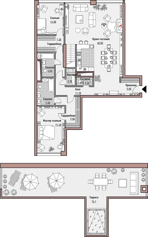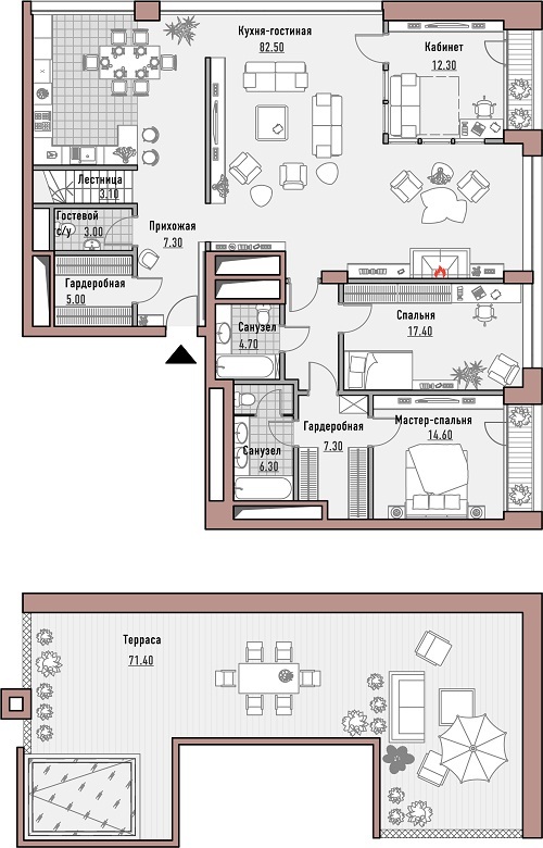 Представлены и эксклюзивные форматы недвижимости — пентхаусы с каминами и собственными террасами. Квартиру в элитном доме «Реномэ» можно приобрести полностью готовую, «под ключ».