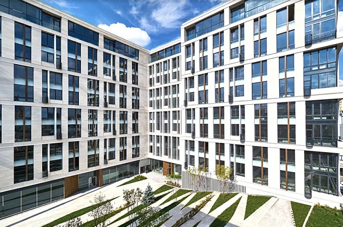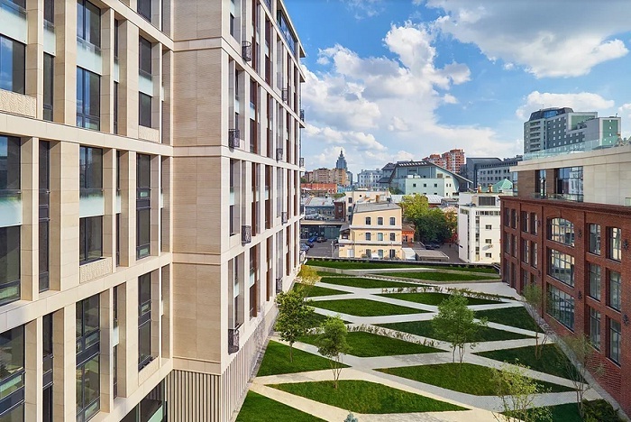 Проект разработан известным бюро - за основу взята современная европейская архитектура, и включает два здания - историческое «Heritage» и современное «Nouveau». Статус подчеркивают натуральные материалы, используемые в отделке как фасадов, так и внутренних интерьеров.