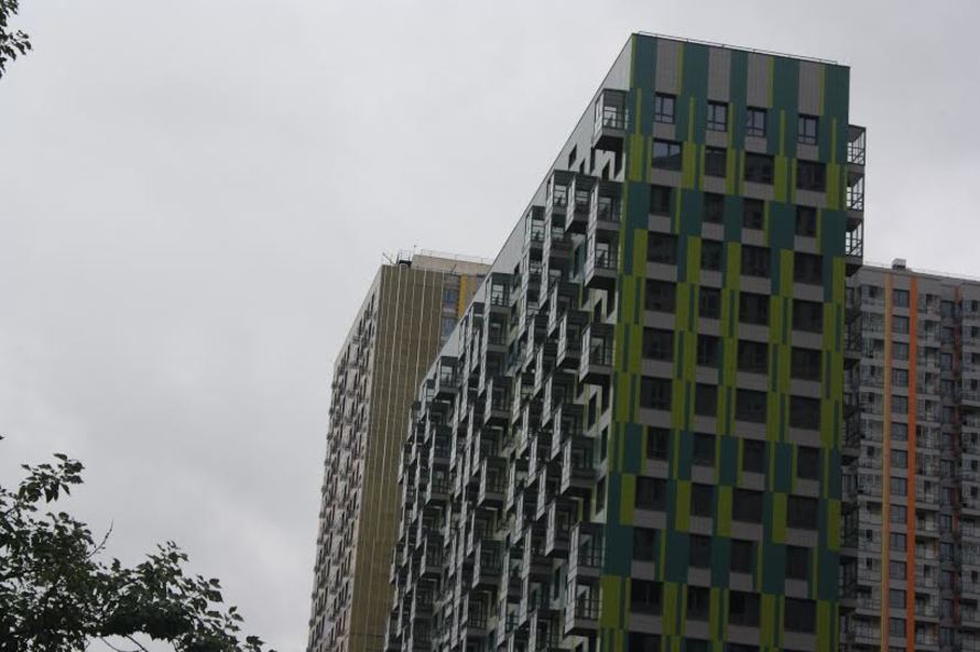Первая очередь имеет переменную этажность — от 15 до 31 этажа, во второй очереди все дома имеют одинаковую высоту — 24 этажа. Здания первой очереди будут окрашены в яркие, нарядные цвета. В каждом строении будет сочетаться целый ряд оттенков — это может быть сине-зеленая, или желто-оранжево-серая гамма. Башни второй очереди будут однотонными.