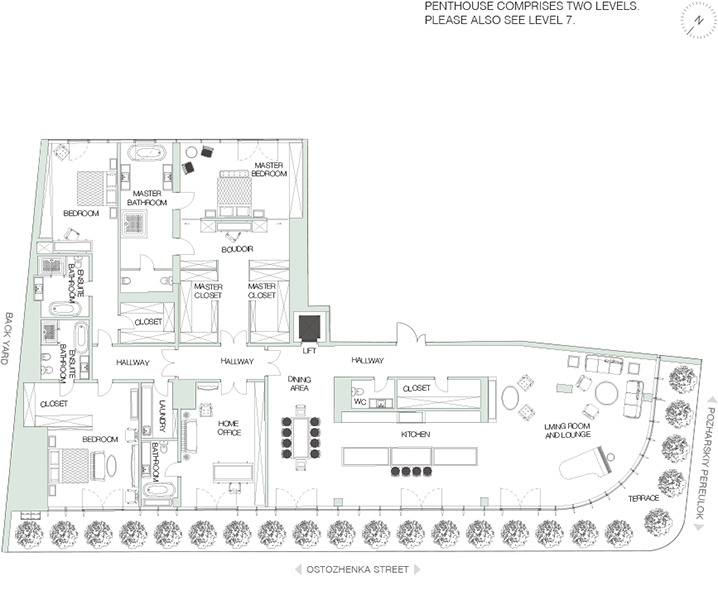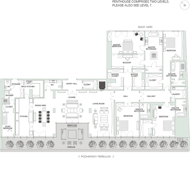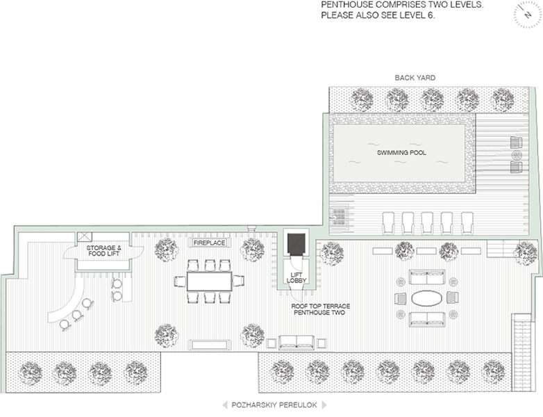 Камины, дизайнерские интерьеры, высокие потолки, панорамные окна, несомненно, оценят будущие владельцы. На верхних этажах расположились два роскошных пентхауса с собственными бассейнами и террасами.