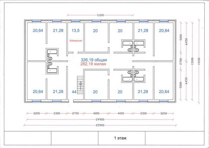 Площадь самой скромной квартиры в комплексе составляет 22 квадратных метров, а самое просторное жилье занимает 200. Высота потолков во всех квартирах - 2,90 метра. Общая площадь всех квартир комплекса составляет 979 кв. метров.