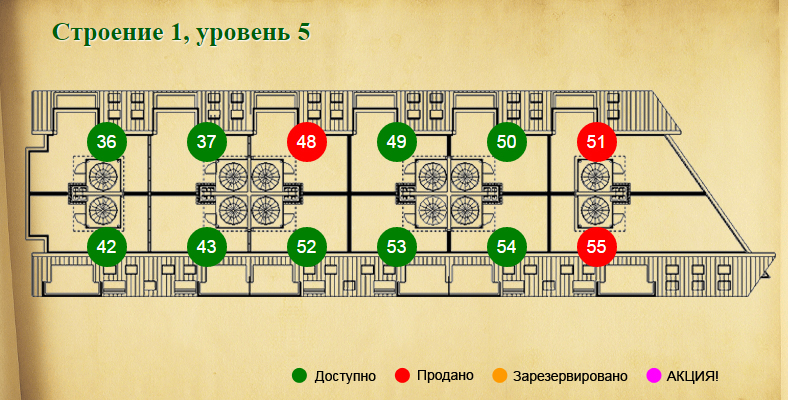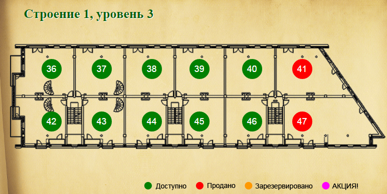 В резиденции два пятиэтажных здания с мансардами, в которых представлены одно-, двух- и трехуровневые апартаменты, прекрасно подходящие и для жизни, и для работы. Площади варьируются от 43 до 116 кв. метров.