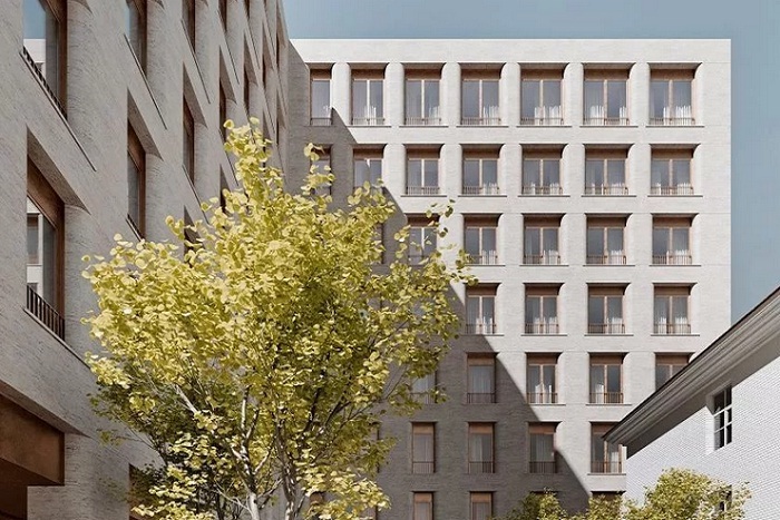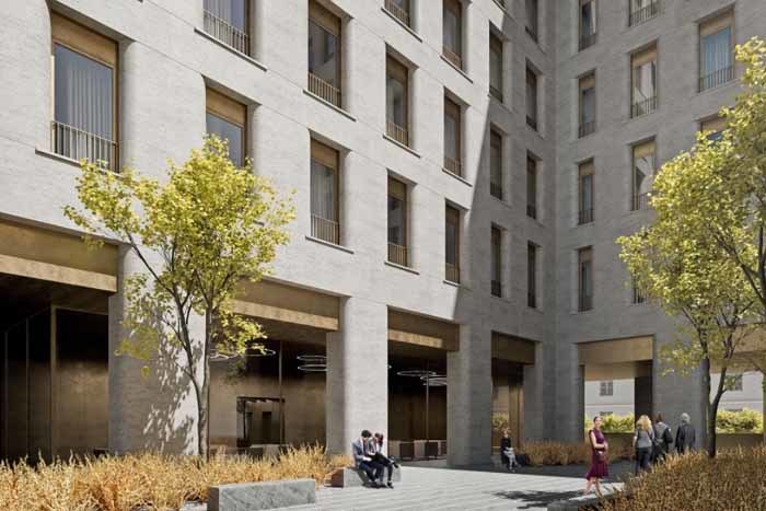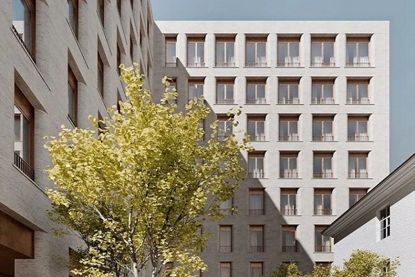 Проект восьмиэтажного здания разработан известным столичным бюро. Классический строгий стиль со светлыми фасадами, отделанными природным камнем и большими окнами с оригинальной расстекловкой позволяет ему стать неотъемлемой частью уже существующей застройки, в том числе, исторической.
