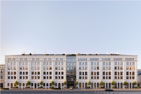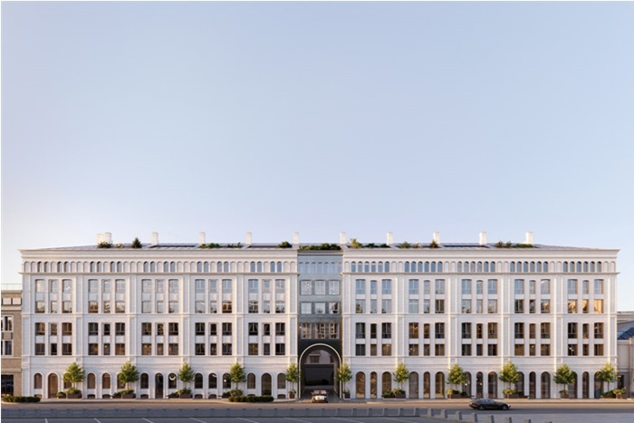 Шестиэтажное здание, выдержанное в классическом стиле, состоит из двух частей – тщательно реставрируемый особняк постройки середины 19 века и новая часть, возводимая по проекту известного итальянского бюро. Соединяет их, создавая гармоничные архитектурный ансамбль, большая арка.