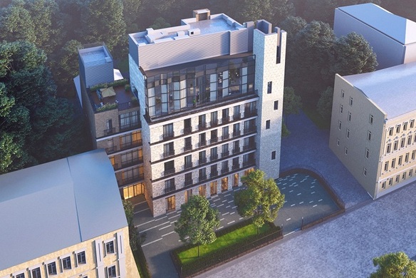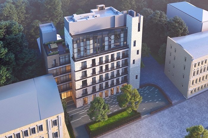 В клубном доме «Эдисон Хаус» предлагается всего 12 апартаментов, площади их начинаются от 58 кв. метров. Верхний этаж занят пентхаусом с приватной террасой на эксплуатируемой крыше — оттуда открываются роскошные виды на исторический центр столицы.