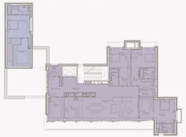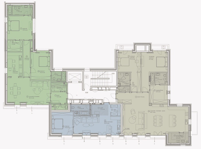 Площадь квартир:58 — 219 м2