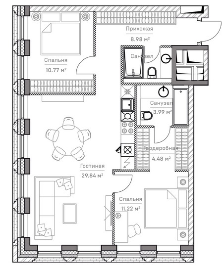 Всего представлено 116 апартаментов, 11 вариантов планировочных решений — от студий до двухуровневых. Сдаваться они будут в готовности «под ключ» - будущие владельцы смогут выбрать дизайн-проект в одном из двух специально разработанных стилей. Новоселы, несомненно, оценят и удобные, функциональные планировки со вспомогательными помещениями и качественные отделочные материалы.