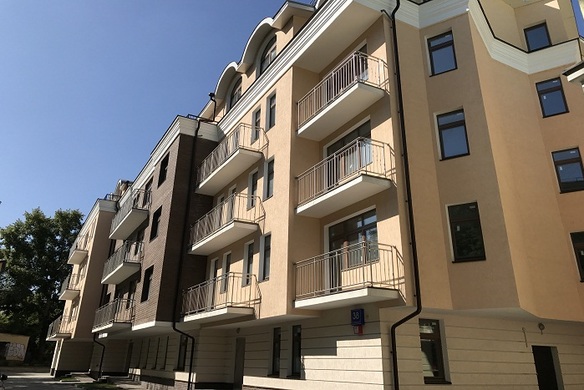 Клубный дом — тщательно отреставрированное четырехэтажное здание с мансардой, выдержанное в сдержанном классическом стиле: светлые фасады, большие окна, балконы с изящным ограждением.