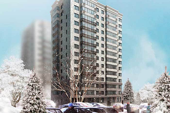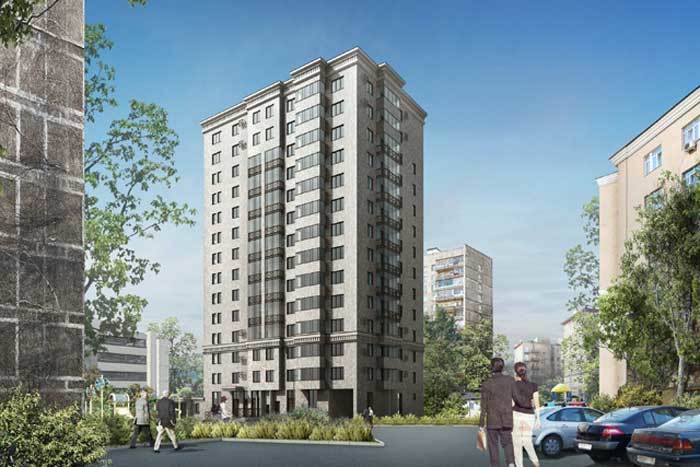Клубный дом — 14-этажное монолитное здание, выдержанное в строгом классическом стиле. В нем предлагается всего 78 квартир площадью от 44 до 97 кв. метров.