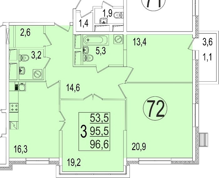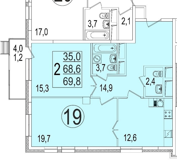 В каждой предусмотрена просторная, от 12 кв. метров, кухня, балкон или лоджия. В двух- и трехкомнатных квартирах имеется по два санузла и дополнительное помещение, которое можно использовать как кладовую или гардеробную.