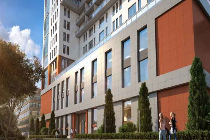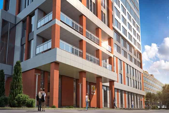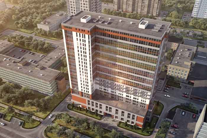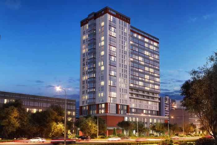Клубный дом — 23-этажное монолитное здание, привлекающее внимание панорамными окнами и стильной дизайнерской отделкой фасадов и входных групп.