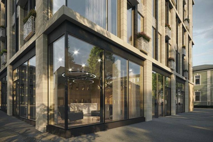 Первый этаж здания нежилой, он отведен под коммерческие помещения — несмотря на расположение в развитом и обжитом районе, проектом предусмотрено развитие внутренней инфраструктуры.