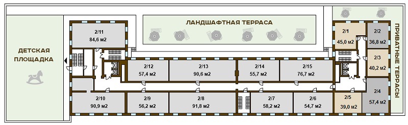 Закрытая территория находится под охраной, работают консьержи. Тщательно продумана внутренняя инфраструктура — под нее отведен первый этаж. Там откроются магазины и кафе, детский клуб, медицинские кабинеты. В закрытом внутреннем дворе устанавливается игровой городок и оформляется фитнес-зона.