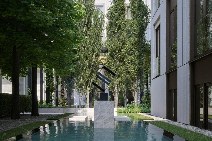 Концепцией клубного дома предполагается развитие полноценной внутренней инфраструктуры, в которую войдут wellness и фитнес- центры, SPA-зона, плавательный бассейн, ресторан премиальный кинотеатр, винная комната. Большинство повседневных бытовых вопросов будут в ведении консьерж-сервиса и управляющей компании. Под автомобили оборудуется двухуровневый паркинг с точками для подзарядки электрокаров. Роскошный двор-сад, несомненно, станет любимым местом отдыха жителей.