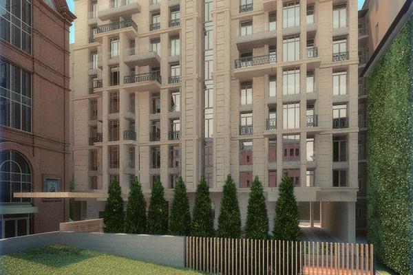 9-этажное здание, выдержанное в стиле неоклассицизма прекрасно вписалось в окружающую историческую застройку. Богатый декор входной группы и отделанный мрамором и гранитом фасад подчеркивают статус клубного дома.