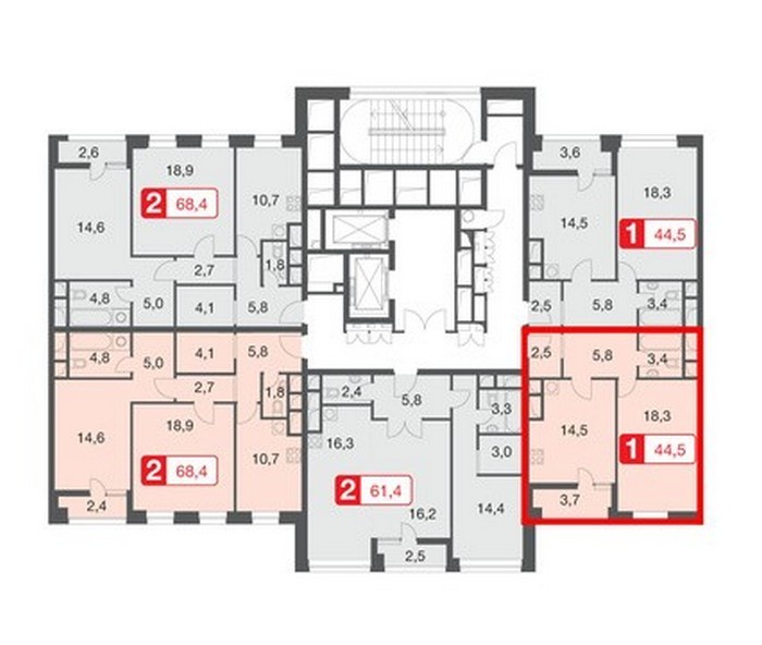 В монолитном семиэтажном доме разместилось 60 апартаментов от 37 до 65 кв. м с высокими потолками и свободной планировкой, но без отделки.