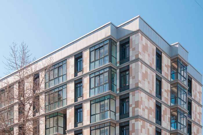Новый комплекс — семиэтажное здание, выдержанное в стиле ар-деко и привлекающее внимание необычной отделкой фасадов и огромными окнами.