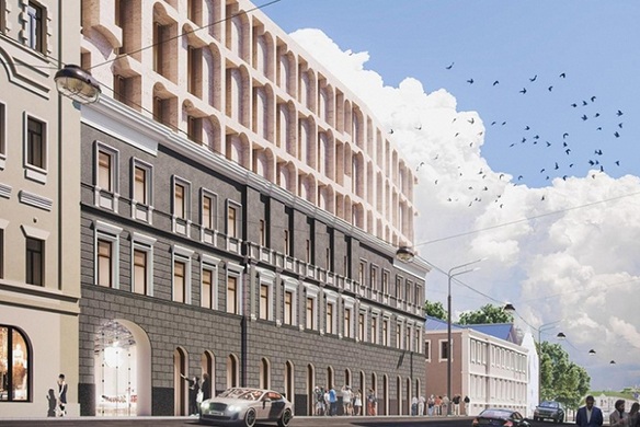 Архитектурная концепция нового комплекса, разработанная известным бюро, объединяет два знаменитых классических стиля — старинных московских палат и итальнcкого палаццо. Помимо реставрации исторических зданий, предусмотрено возведение шестиэтажного монолитного здания, привлекающего внимание огромными арочными окнами и богатым декором фасадов.
