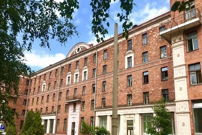 Пятиэтажное кирпичное здание, состоящее из трех корпусов, постройки середины прошлого века реконструируется с полной заменой инженерных систем и коммуникаций и перепланировкой внутреннего пространства.