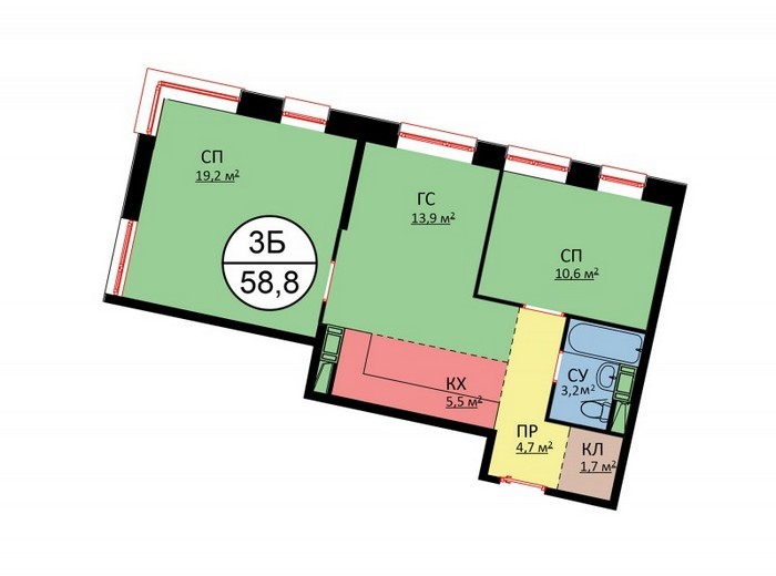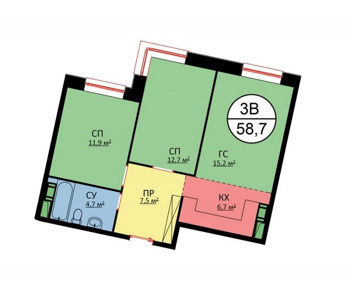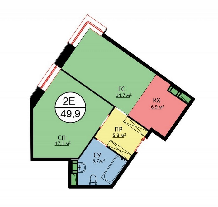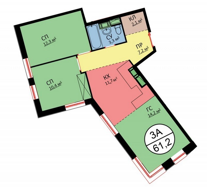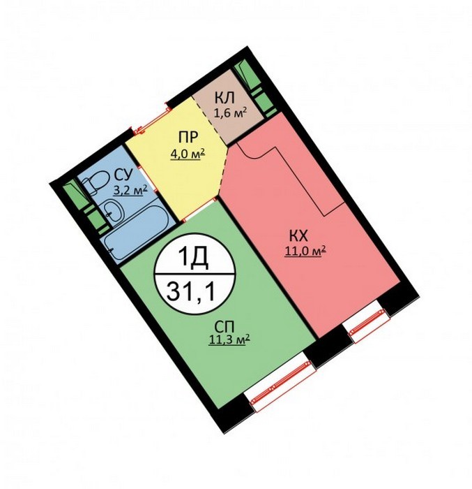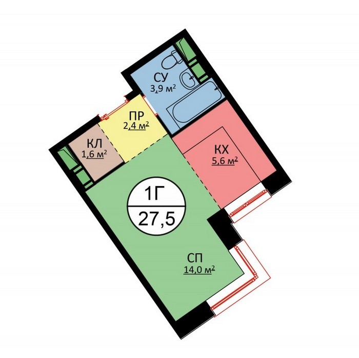 Площадь квартир:28 — 62 м2