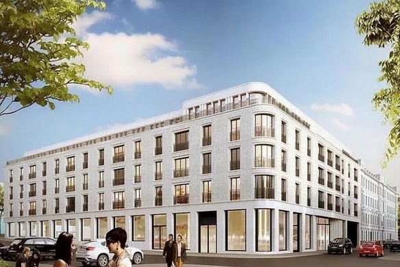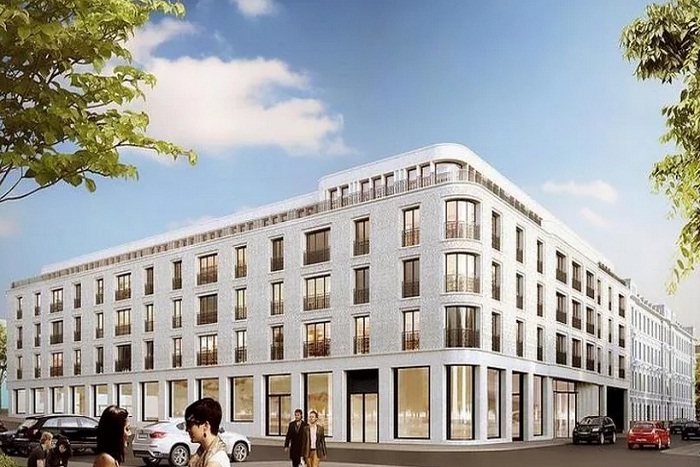 Пятиэтажное здание выдержано в строгом классическом стиле, привлекая внимание панорамными окнами, богатым декором светлых фасадов и просторными входными группами с дизайнерскими интерьерами.
