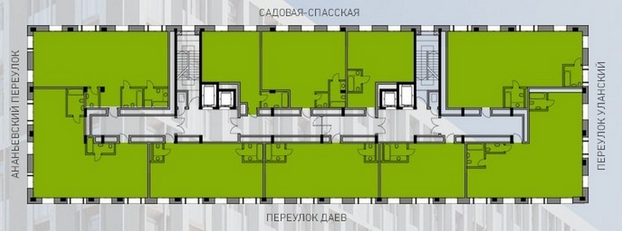 В разработке проекта принимало участие одно из ведущих архитектурных бюро — восьмиэтажное здание прекрасно вписалось в окружающую историческую застройку, став ее неотъемлемой частью.