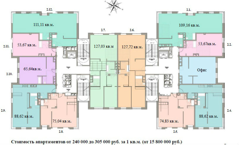 Стартовая цена на апартаменты выглядит весьма привлекательно — 240 тыс. руб./кв.м. Что позволяет сделать «входной билет» на уровне 15,8 млн. рублей. Цифра вполне сопоставимая с ценой в бизнес-классе. Но согласно ценовой политике девелопера, цены существенно возрастают с каждым этажом. На седьмом они доходят до 475 тыс. руб./кв. м. Поэтому сейчас продажи на низких этажах пока закрыты.
