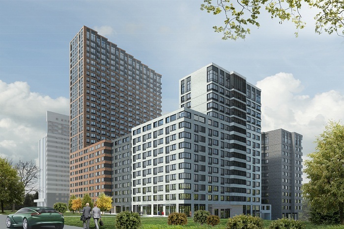 Архитектурный облик нового комплекса разработан известным столичным бюро — несколько монолитных зданий переменной этажности привлекают внимание яркими фасадами и стильным оригинальным остеклением.