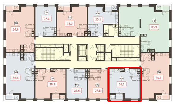 Недвижимость в ЖК «Смольная, 44» представлена апартаментами площадью от 27 кв. метров. Большая часть — студии и однокомнатные квартиры линейной планировки — их около двух третей от общего предложения жилья. Можно подобрать варианты до 86 кв. метров с выходом на две стороны света.