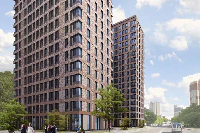 МФК включает два монолитных дома-«башни», высота каждого составляет 17 этажей. Выдержаны здания в ярком современном стиле, привлекая внимание яркими фасадами с отделкой из кирпича и композитных панелей и большими окнами.