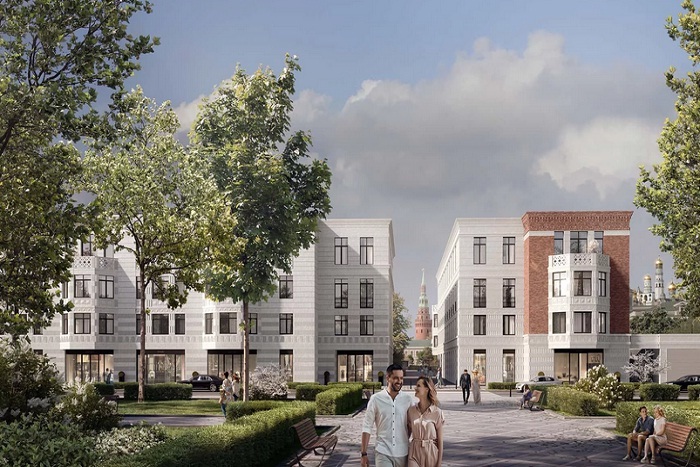 На закрытой, тщательно охраняемой территории элитного квартала представлена как реконструированная историческая застройка, так и четыре новых 4-этажных здания, спроектированных известными московскими архитекторами и прекрасно вписывающимися в общую концепцию.