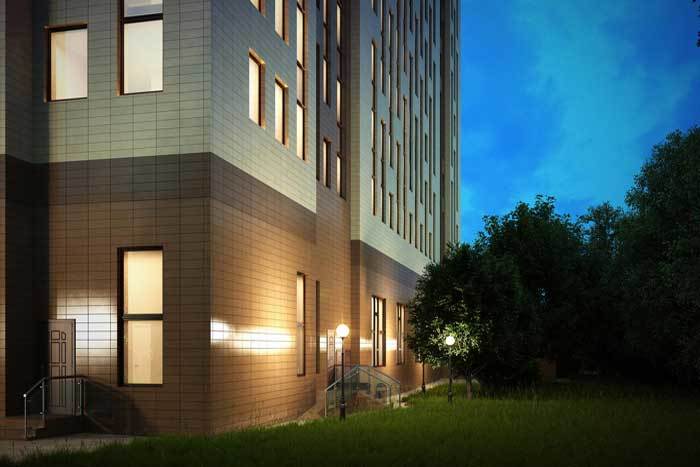 Новый комплекс — здание переменной этажности (2-10 этажей), выдержанное в современном стиле — строгие линии, теплые тона фасадов и огромные панорамные окна, обеспечивающие максимальное количество естественного света.