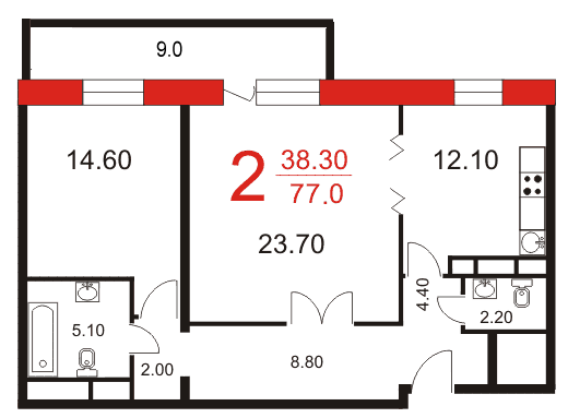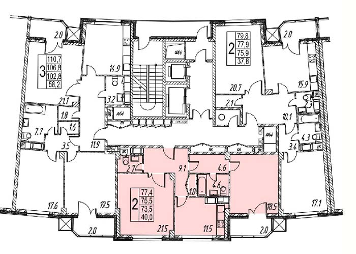 2-комнатные квартиры имеются площадью от 71 до 77 м2 руб. стоимостью от 15 до 16,3 млн. руб., средняя стоимость м2 от 182 т. Руб.
