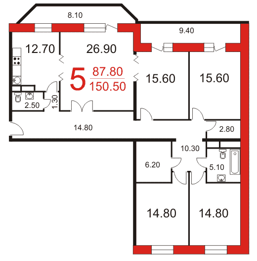 Планировки квартир предлагаются так же со свободной планировкой, есть даже 5-комнатные квартиры.