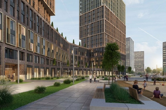 Авторство проекта принадлежит известному голландскому бюро — высотные корпуса выдержаны в ярком современном стиле, привлекая взгляды оригинальными решениями фасадов, причем каждый уникален, огромными окнами и дизайнерскими входными группами.