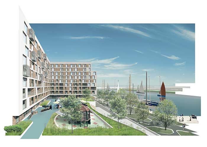 «Мы хотим по максимуму «использовать воду», — рассказывает г-н Ваулин. Поэтому здесь будут причалы, стоянки для водного транспорта — на 50 лодок и катеров, лодочная станция. Будут действовать официальный сервис, прокат яхт. Также будут предоставляться места для хранения лодок в зимнее время. Полагаю, что те, кто может позволить себе приобрести жилье здесь, смогут приобрести хотя бы подержанную лодку, средняя стоимость которой составляет 10 тыс. долларов. Также здесь будет бесплатная парусная школа — она разместится на первом этаже здания на площади 150 кв.м. Важно, что жители района не будут отрезаны от воды транспортным потоком».